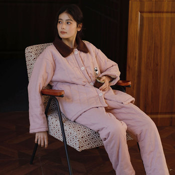 Yüksek kalite artı boyutu uzun kollu rahat gevşek kalın ve sıcak kadın sıcak pijama seti